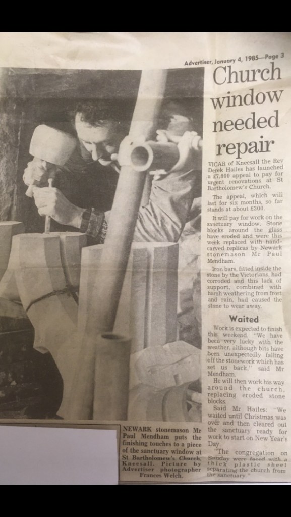 Utterby – The main body of this project was the tower work, this included extensive stone replacement on the chalk tower, redecoration of weather vane including gold leaf, window repair work including glazing, gutters and downpipes, decorative internal glass screen, limewashing of all of the chalk stone on the tower to create a protective layer, a full replacement gable end and new coping stones